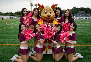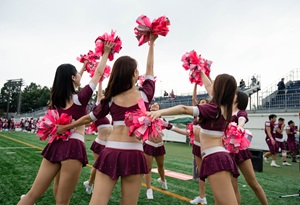 運動促進サポートのため、 試合会場ではピンク色のグッズをチーム関係者が身に着けており、私達チアリーダーズはピンク色のポンポンでパフォーマンスしております!
